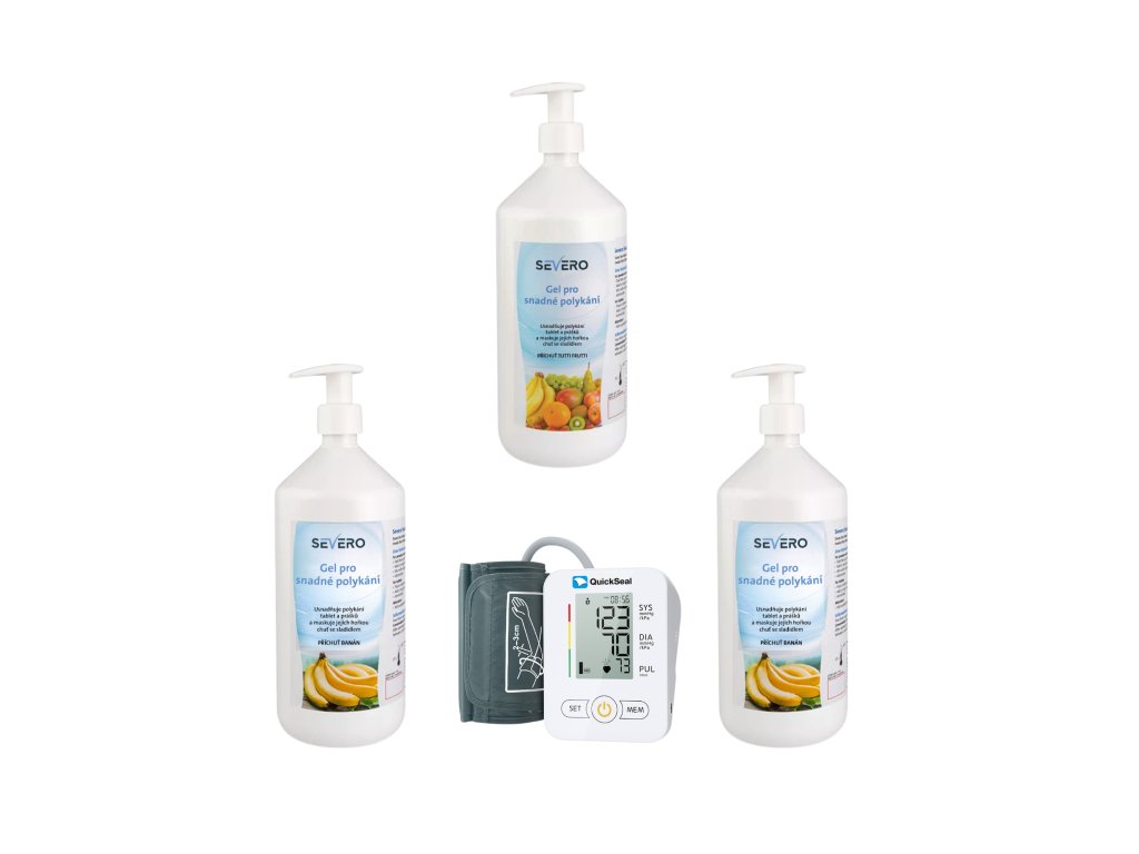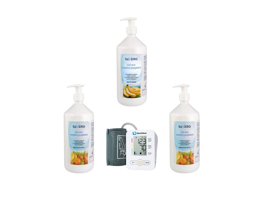 Praktický set pro domácnosti, seniory, pečovatele i zdravotnická zařízení. Obsahuje 3×1 litr polykacího gelu Severo® a digitální tlakoměr RN‑032A, který je registrovaným zdravotnickým prostředkem určeným k orientačnímu měření krevního tlaku.